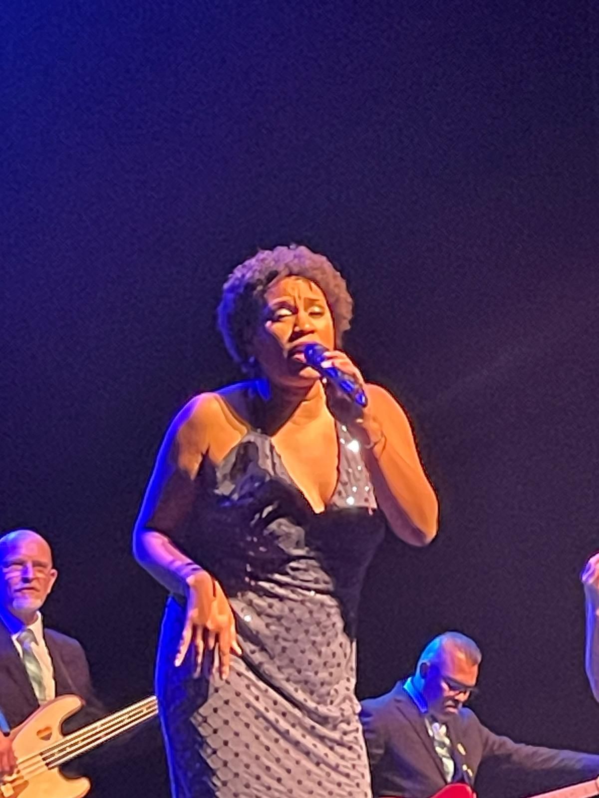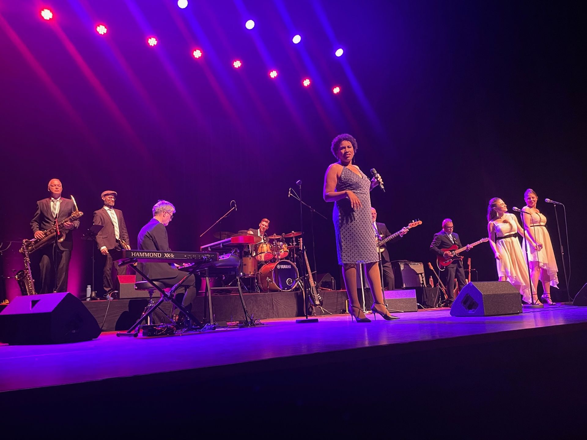 . . . 'THE ARETHA FRANKLIN EXPERIENCE' BIJVOORBEELD, BESTOND UIT EEN STEL DOORGEWINTERDE MUSICI MET EEN ZANGERES MET EEN DIJK VAN EEN STEM. En als dan de hele zaal staat te swingen en uit z’n dak gaat, moet je als recensent niet zeuren.